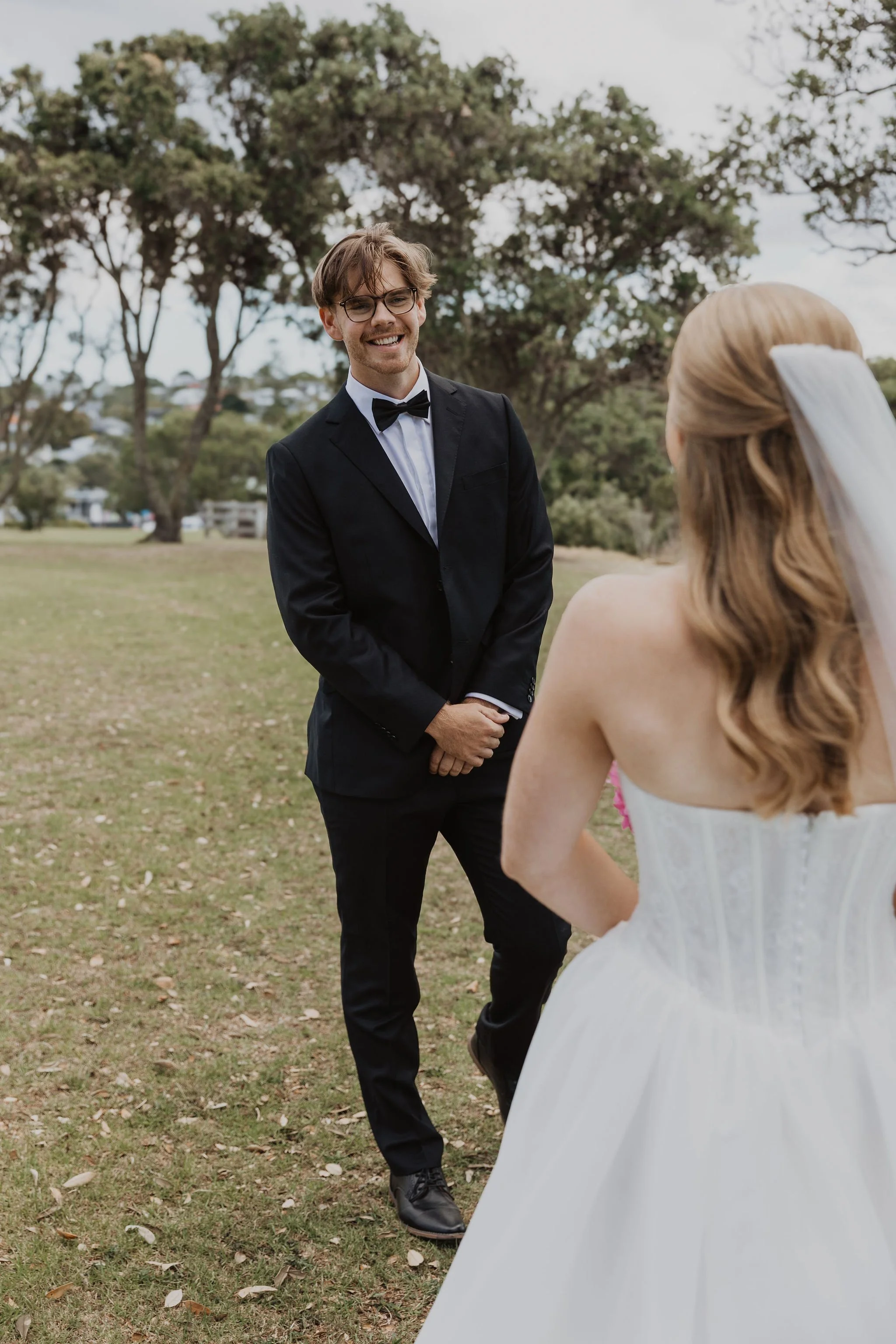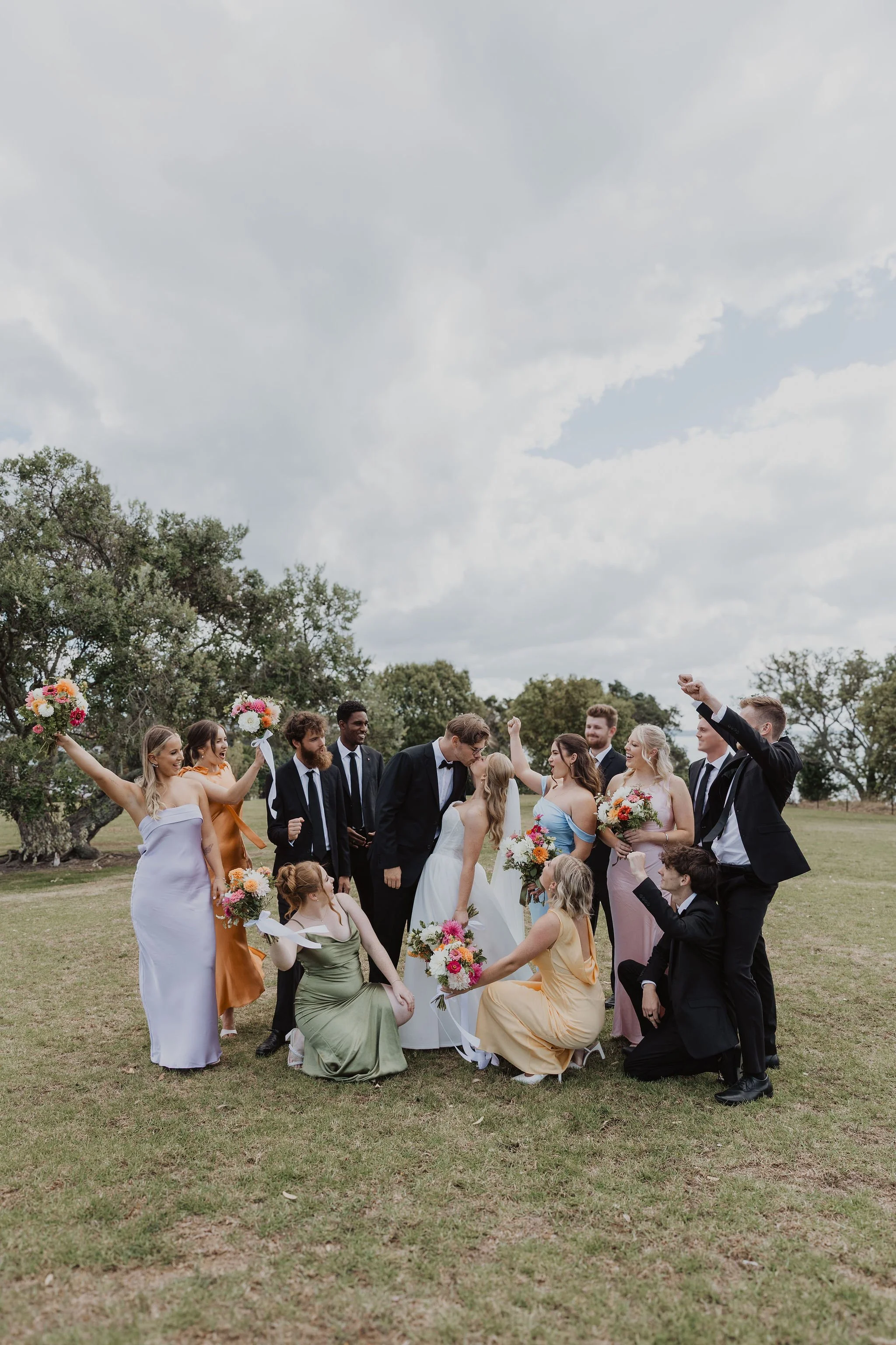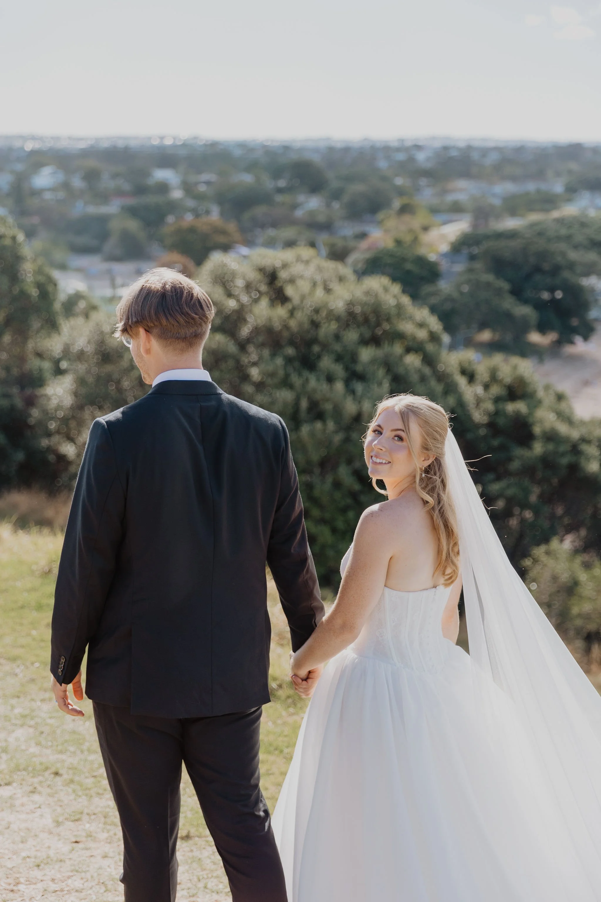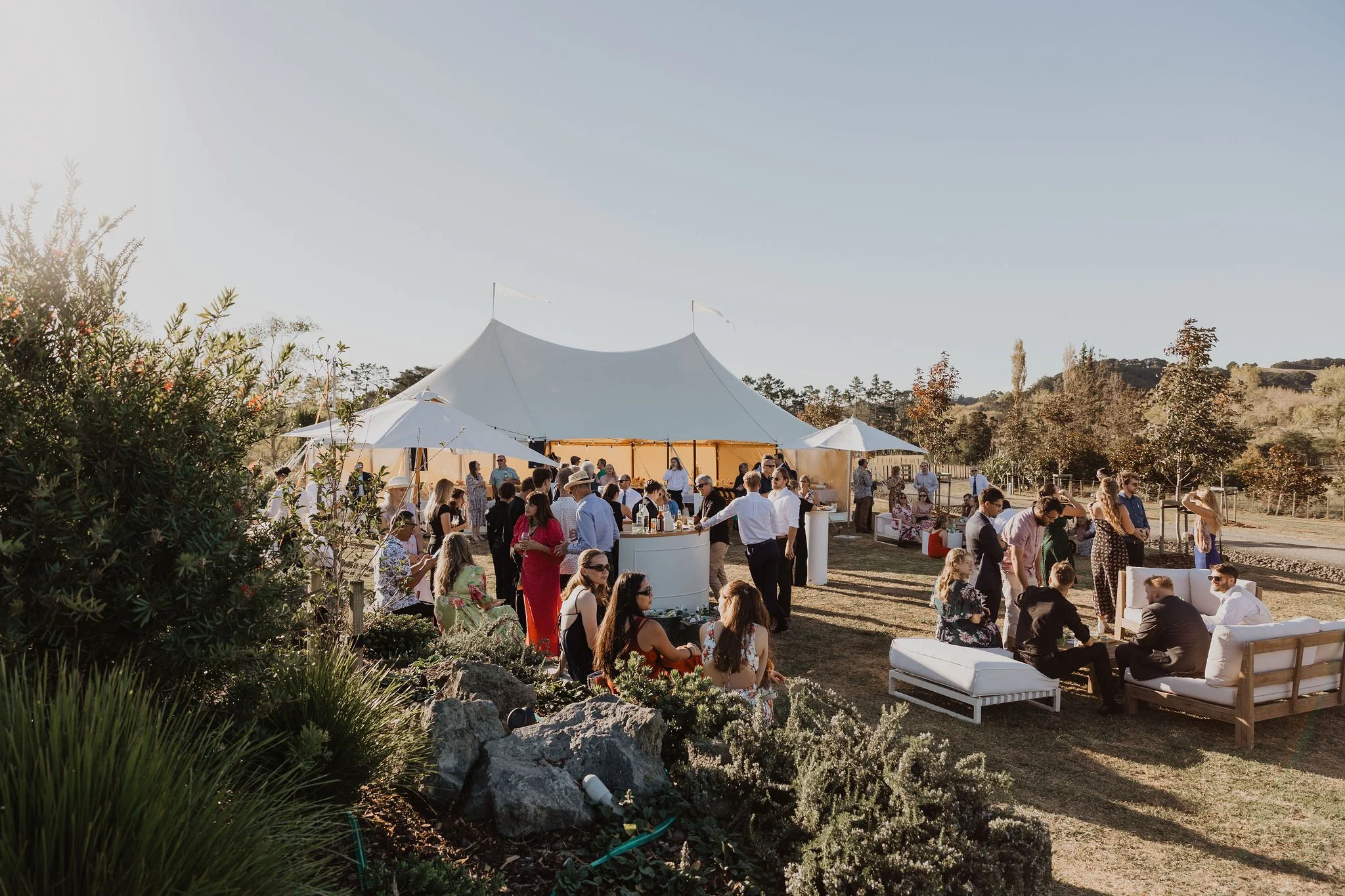 Isobel and Robbie were blessed with one of the hottest days of summer — the kind of heat that gives everything a soft, golden glow. After their sweet Devonport ceremony, everyone headed out to a private property where a beautiful marquee sat waiting. Almost every detail was created or contributed by friends, which made the whole day feel incredibly personal and full of heart.