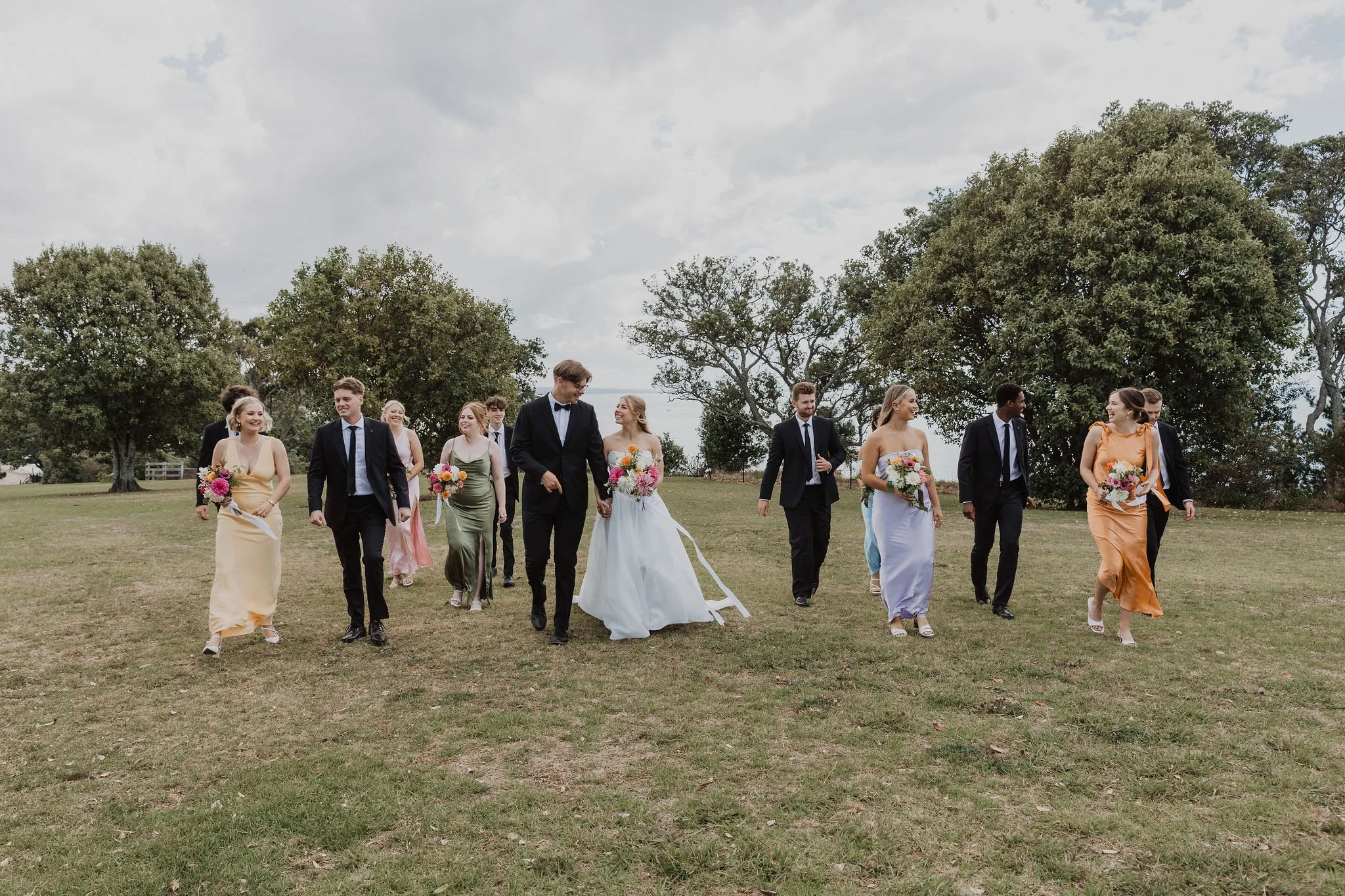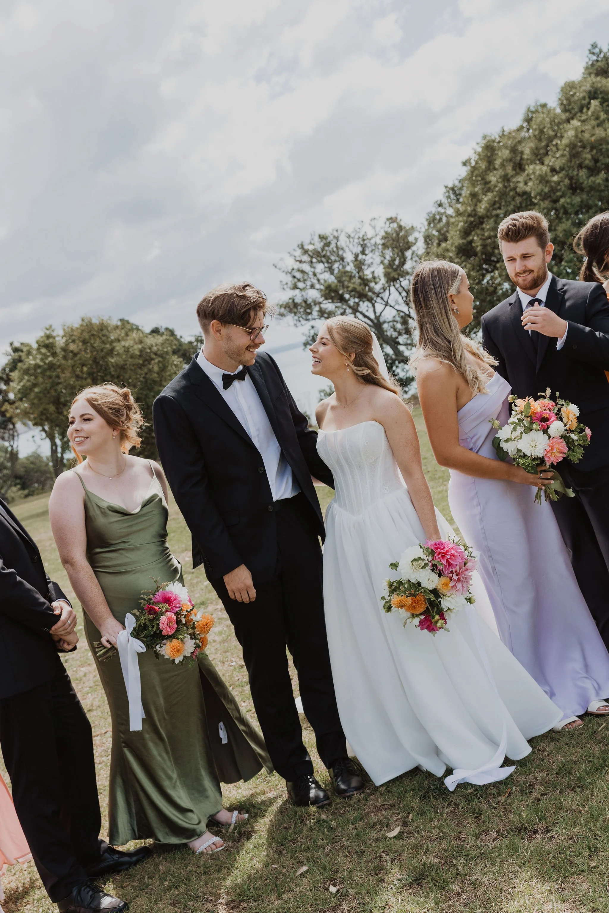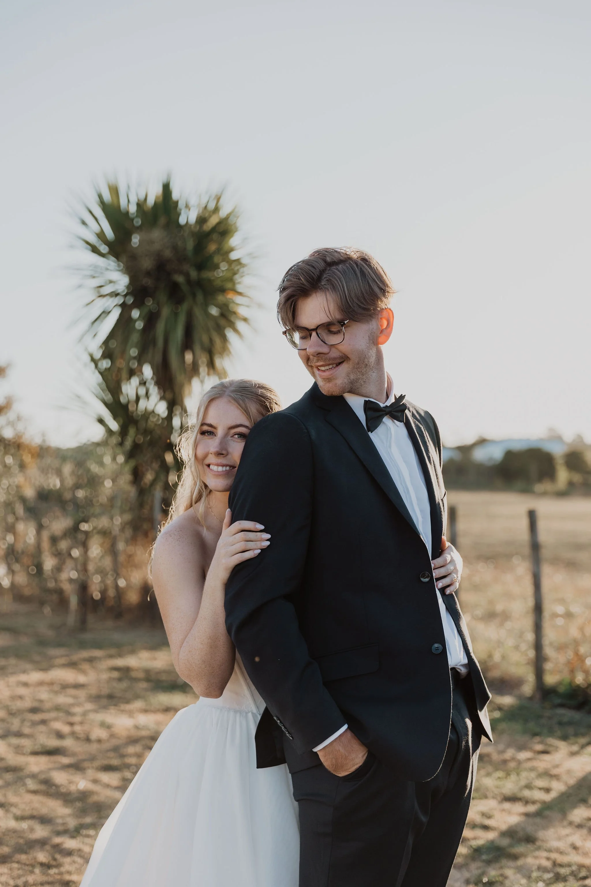 Isobel and Robbie were blessed with one of the hottest days of summer — the kind of heat that gives everything a soft, golden glow. After their sweet Devonport ceremony, everyone headed out to a private property where a beautiful marquee sat waiting. Almost every detail was created or contributed by friends, which made the whole day feel incredibly personal and full of heart.