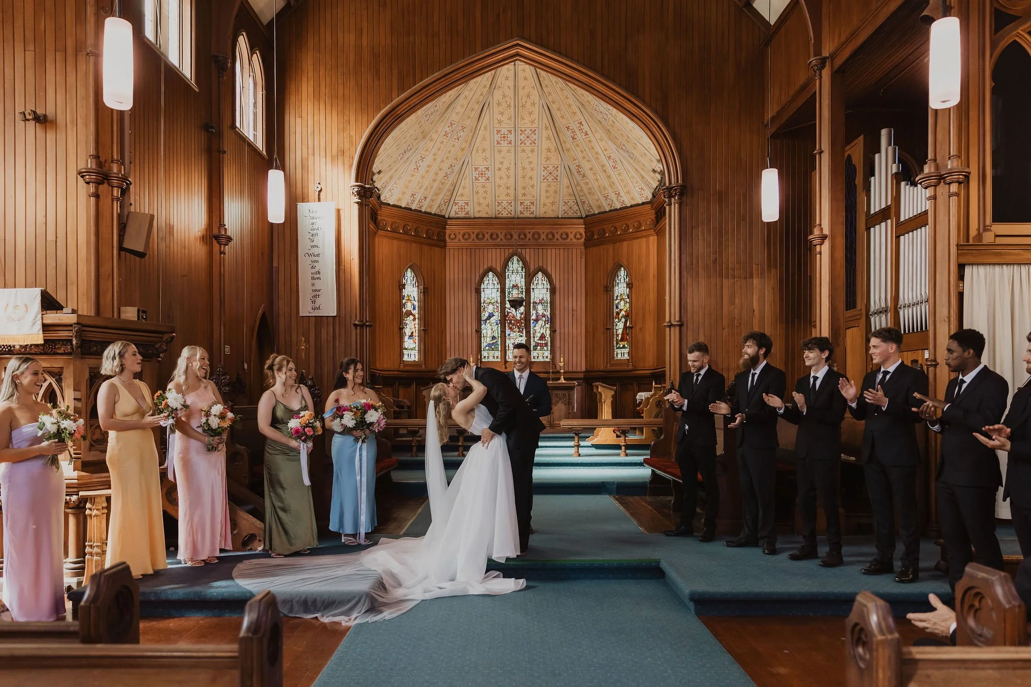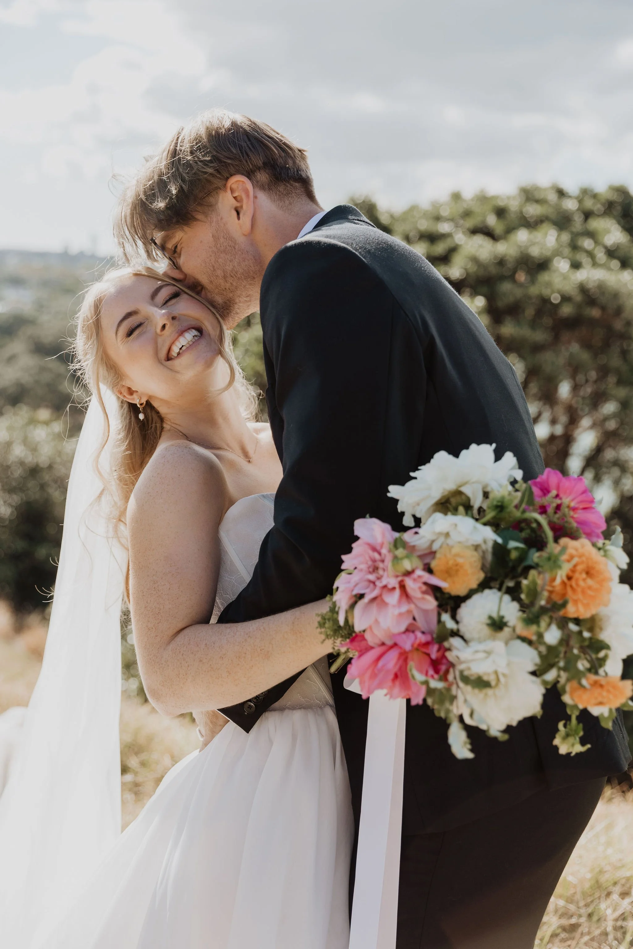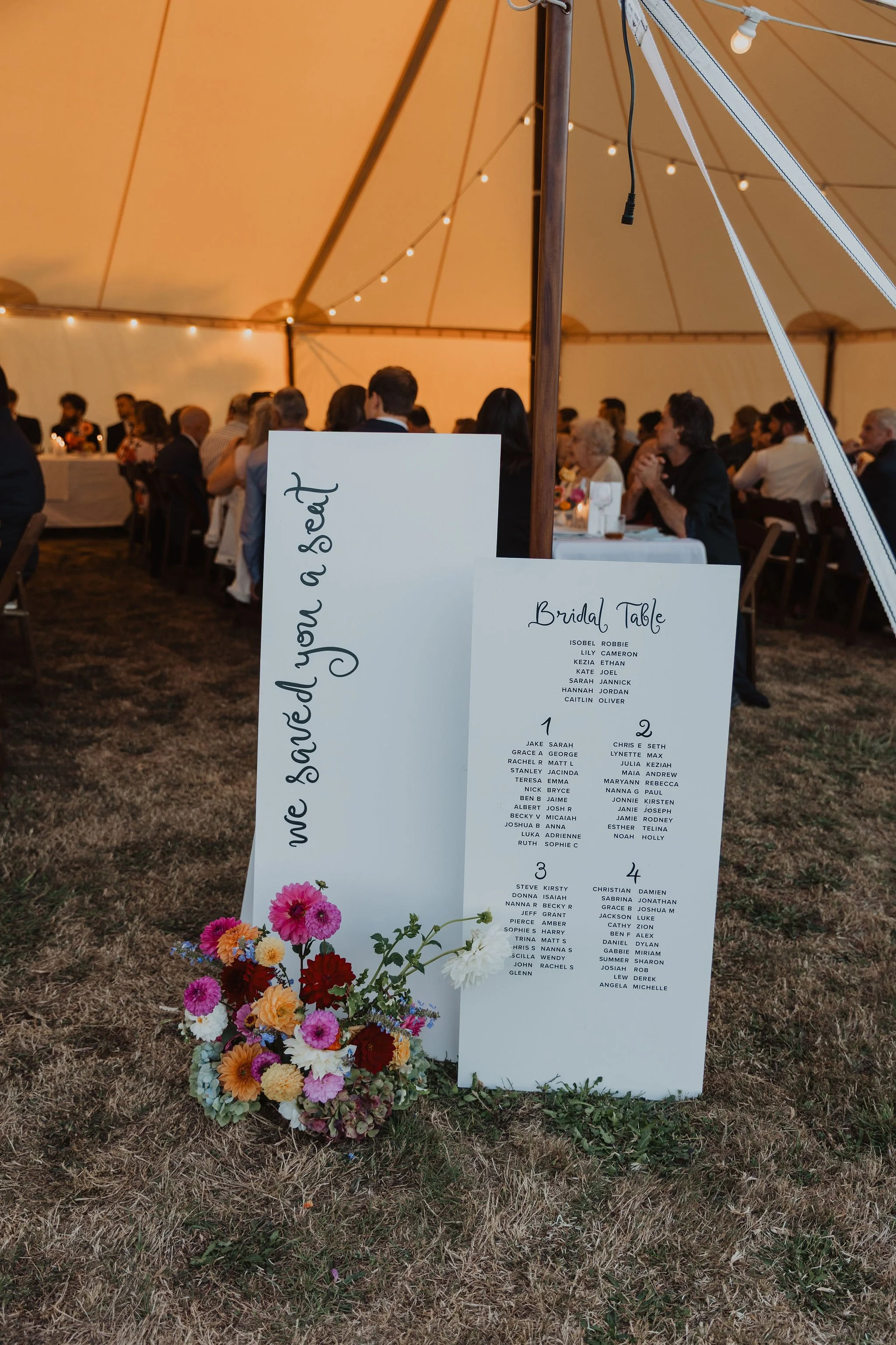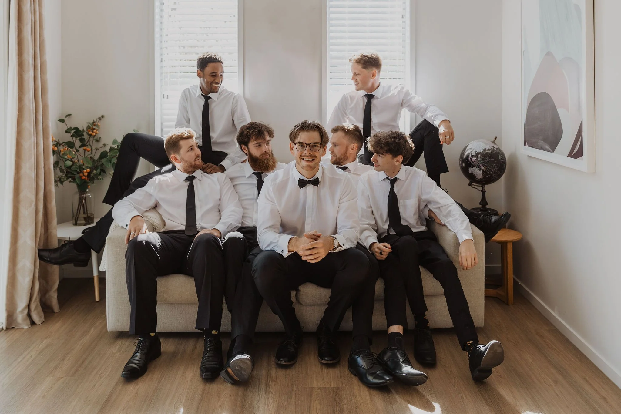 Isobel and Robbie were blessed with one of the hottest days of summer — the kind of heat that gives everything a soft, golden glow. After their sweet Devonport ceremony, everyone headed out to a private property where a beautiful marquee sat waiting. Almost every detail was created or contributed by friends, which made the whole day feel incredibly personal and full of heart.