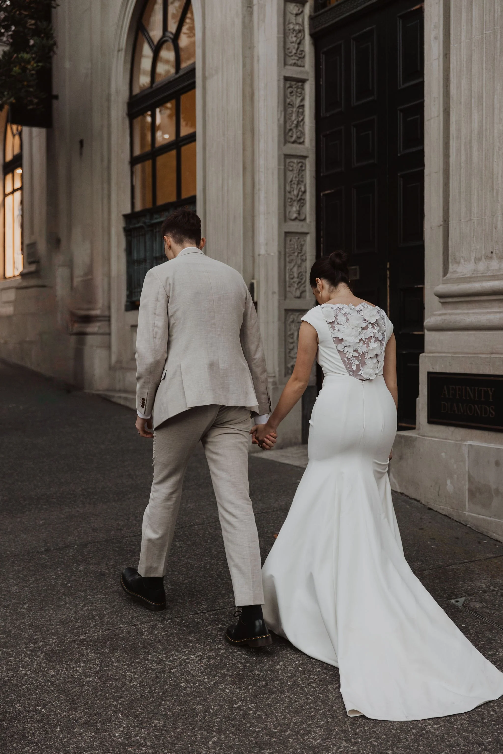 Whether it has rained on your wedding day, your photos didn’t turn out how you expected or you just want photos in a place you couldn’t get to on your wedding day, a bridal shoot before or after your special day is another chance to get dressed up and have fun. We went out one afternoon for a post-wedding shoot in Auckland CBD.